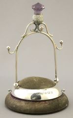 Hallmarked Silver Ladies Ring Tree with Amethyst Thistle, 4"H.