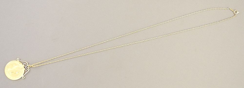 1958 Gold Sovereign (modified as a pendant) / 10K (marked) Yellow Gold Chain, 19"L, TW 10.82 gram