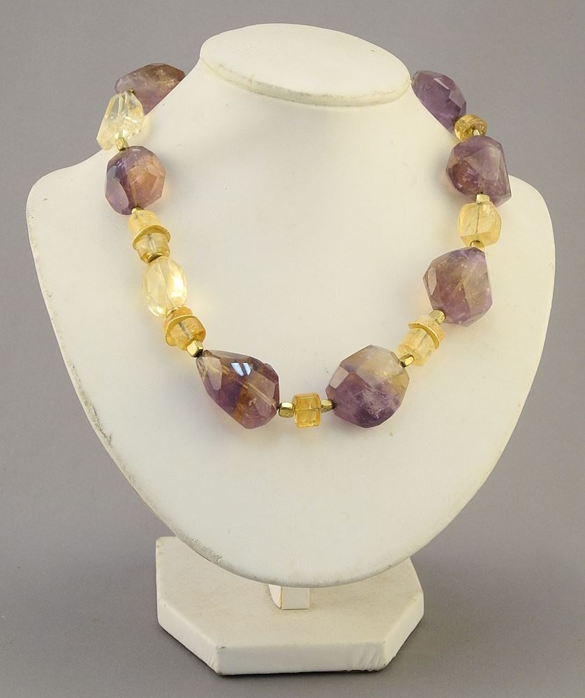 LOT 139 Faceted Amethyst and Citrine Necklace with Gilt Sterling (925) Clasp, 19"L. Estimate: $50 - $100 Sold For: $60 Auction Date: Tuesday, September 19 2023 at 4:00 PM