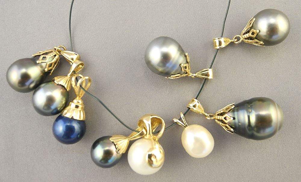 Cultured Pearl Pendants, All Set in 14K Gold, Various Sizes and Colours, 9 pcs.