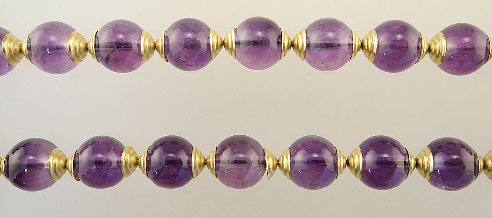 Uniform Amethyst Bead Necklace with Gold-Tone Spacers & 14K Clasp, 16" Long