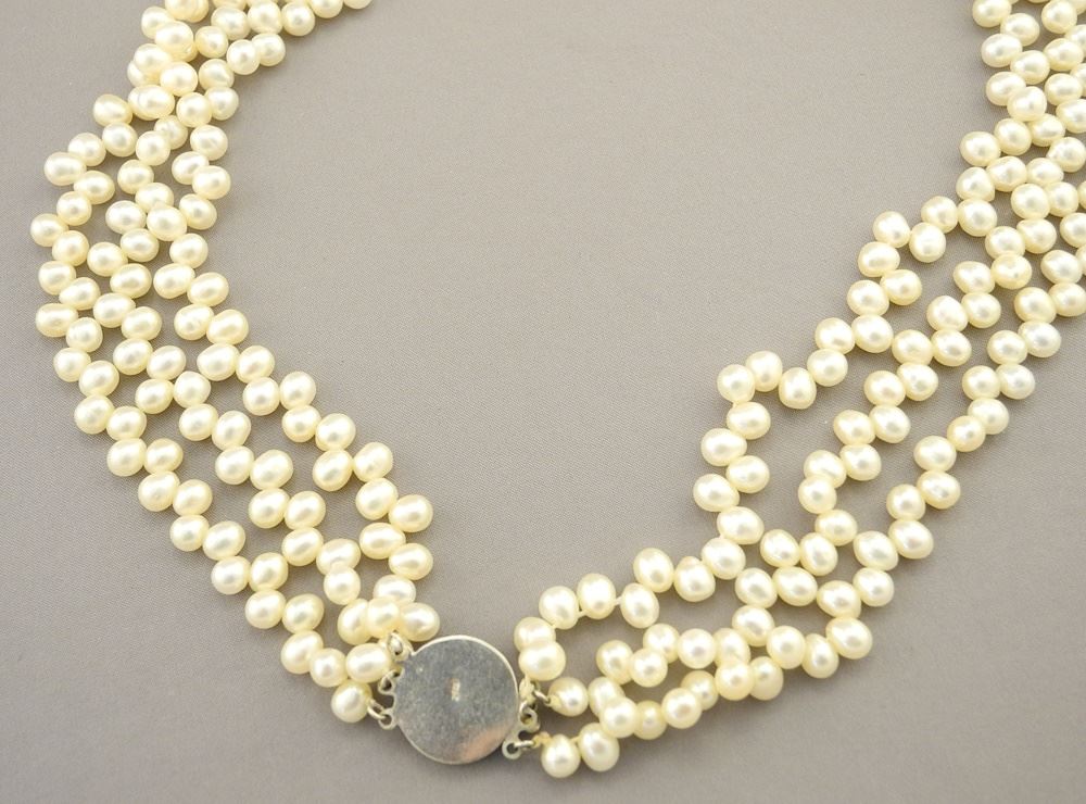 LOT 86 Triple Strand of Cultured Freshwater Pearls with Sterling (marked) Clasp, 20"L. Estimate: $100 - $200 Sold For: $80 Auction Date: Tuesday, September 19 2023 at 4:00 PM