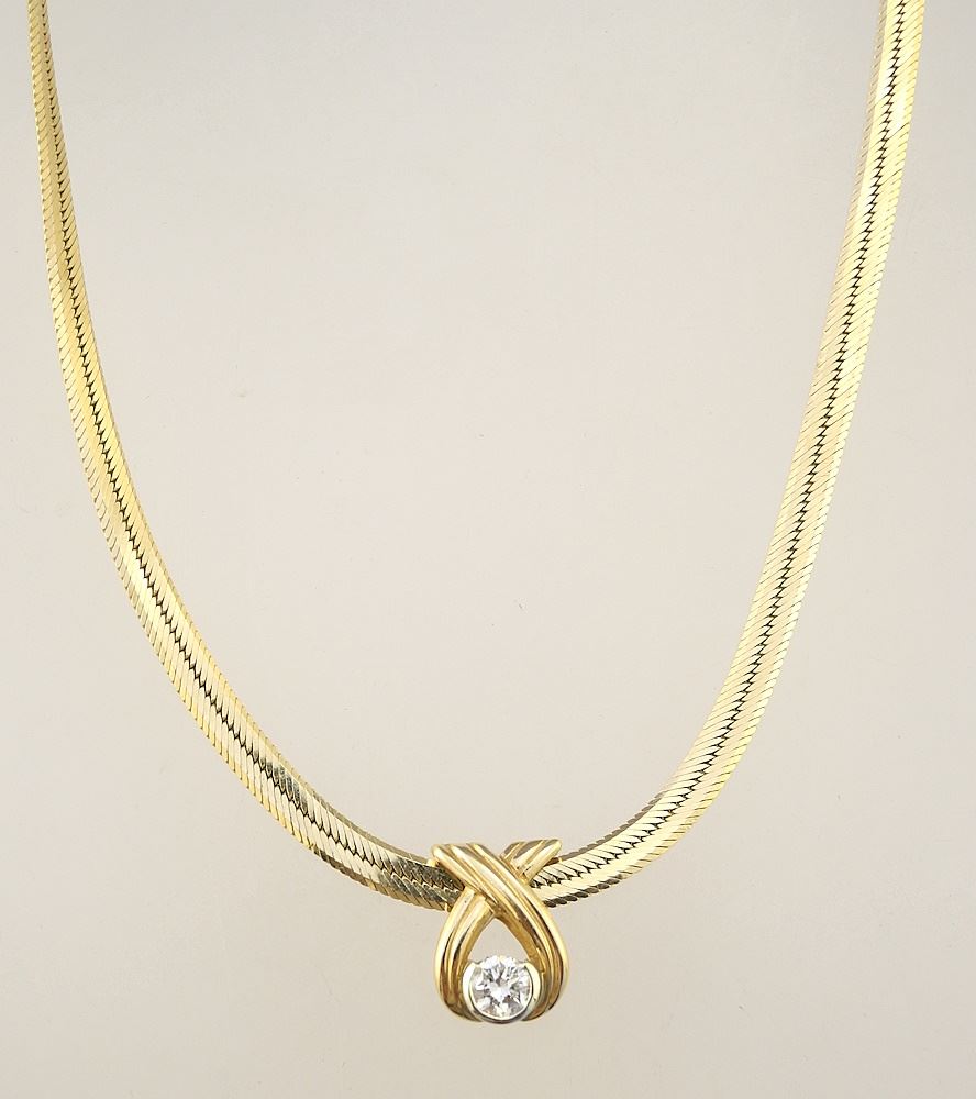 LOT 29 14K (marked 585 & 14K) Gold & .23 Ct Diamond Necklace, 15 1/2"L, 10.25gms Estimate: $500 - $800 Sold For: $700 Auction Date: Tuesday, September 19 2023 at 4:00 PM