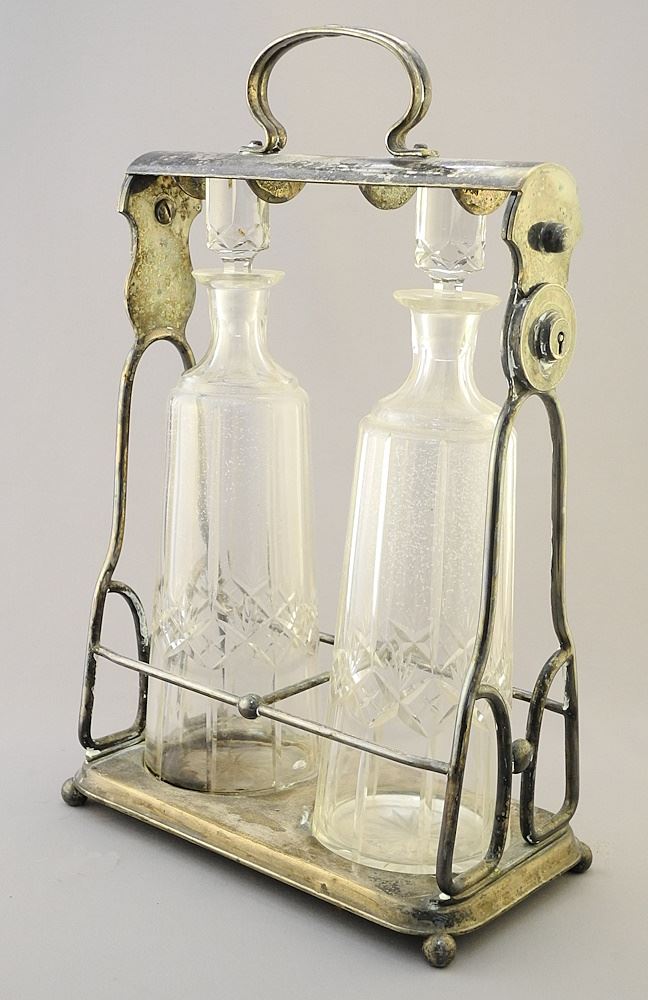 LOT 16 WMF Silver Plated Two Bottle Tantalus, Lacking Key. Estimate: $50 - $70 Sold For: $50 Auction Date: Tuesday, September 19 2023 at 4:00 PM