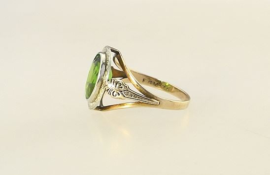 LOT 117 14K (marked) Yellow & White Gold Ring with Green Stone, Size 6 1/4, 2.3 Grams. Estimate: $120 - $180 Sold For: $120 Auction Date: Tuesday, February 13 2024 at 4:00 PM
