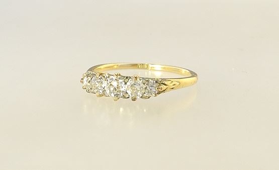 Yellow Gold Ring (mark obliterated) Set with 5 Graduated Diamonds, Size 8 3/4.