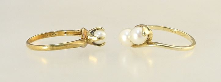 Two 10K (Marked) Yellow Gold & Pearl Rings, Both Size 5 1/2, TW 3.7 Grams