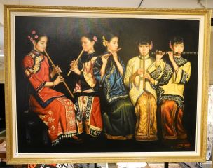 LOT 90 Oil on Canvas signed E. F. Chan, 35 1/4" x 47 1/2", "Flautists". Estimate: $200 - $300 Sold For: $325 Auction Date: Tuesday, February 13 2024 at 4:00 PM