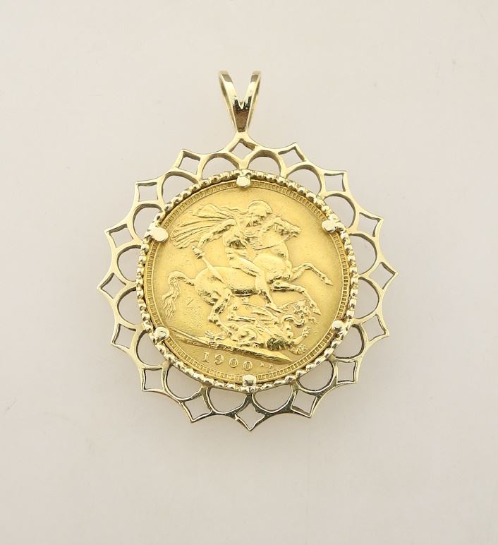 1900 Gold Sovereign in 14K (marked) Yellow Gold Surround, TW 11.38g.