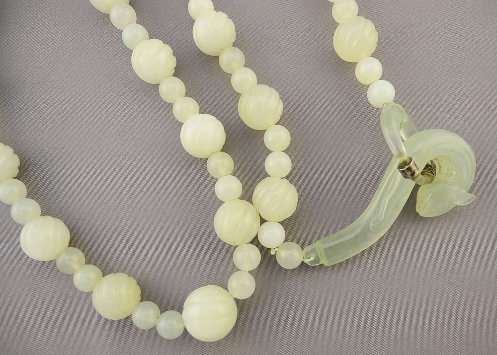 Strand of Pale Green Jade Beads with Chilong Clasp, 29"L, 96g.