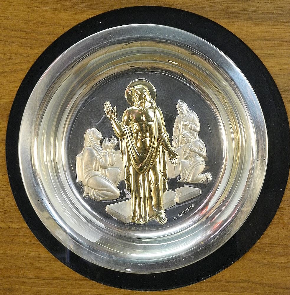 Gold Electro Plate on Sterling Silver, "He is Risen" Dish, #2251, 1974.