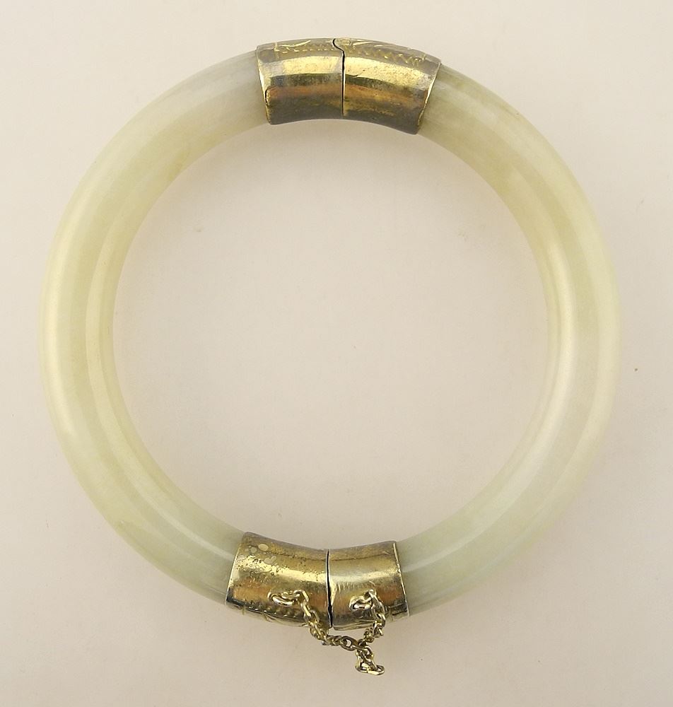 LOT 180 Jade Hinged Bangle, 2 13/16" Diameter. Estimate: $60 - $100 Sold For: $70 Auction Date: Tuesday, June 18 2024 at 4:00 PM
