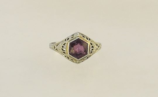 LOT 133 Vintage 10K (marked) White Gold & Amethyst Ring with box, Size 4 1/2, 1.16g (as found). Estimate: $60 - $100 Sold For: $40 Auction Date: Tuesday, June 18 2024 at 4:00 PM