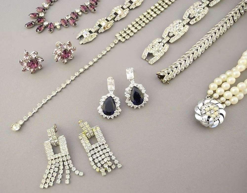 LOT 208 Collection of Diamante Costume Jewelry, unsigned. Estimate: $80 - $120 Sold For: $40 Auction Date: Tuesday, June 18 2024 at 4:00 PM