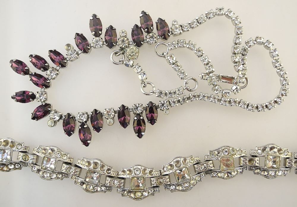 LOT 208 Collection of Diamante Costume Jewelry, unsigned. Estimate: $80 - $120 Sold For: $40 Auction Date: Tuesday, June 18 2024 at 4:00 PM