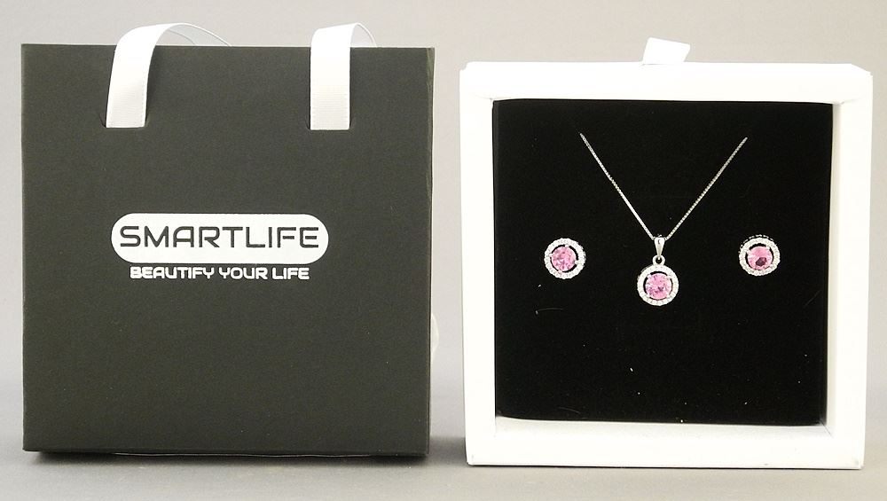 LOT 175 Sterling Silver with White Gold Overlay Lab Grown Pink Sapphire Halo Necklace & Earrings. Estimate: $50 - $80 Sold For: $70 Auction Date: Tuesday, June 18 2024 at 4:00 PM