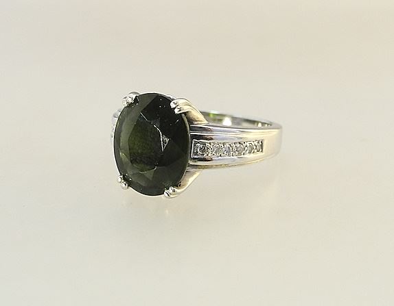 14K (marked) White Gold Approx. 5.2 ct Green Tourmaline Ring, Size 8, 6.0g with Appraisal.