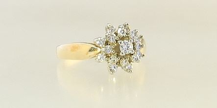 14K (marked) Yellow Gold Diamond Cluster Ring, Size 6 3/4, 4.1g.
