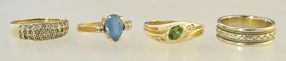 LOT 162 4 x 14K (marked) Gold Rings, Sizes 6-8, TW 14.4g. Estimate: $400 - $500 Sold For: $500 Auction Date: Tuesday, June 18 2024 at 4:00 PM