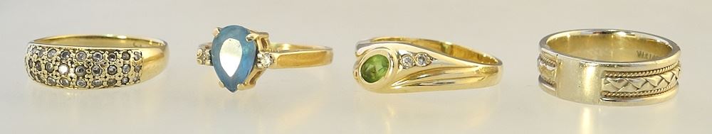 LOT 162 4 x 14K (marked) Gold Rings, Sizes 6-8, TW 14.4g. Estimate: $400 - $500 Sold For: $500 Auction Date: Tuesday, June 18 2024 at 4:00 PM
