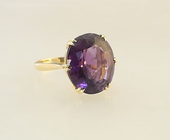 9c (marked) Yellow Gold & Amethyst Ring, Size 6 3/4, 6.4g.
