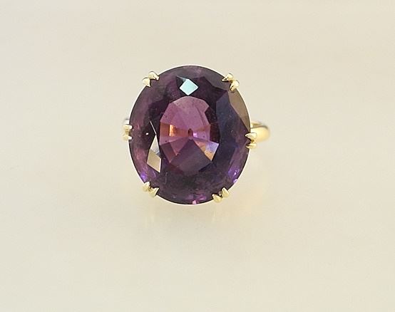 LOT 58 9c (marked) Yellow Gold & Amethyst Ring, Size 6 3/4, 6.4g. Estimate: $150 - $200 Sold For: $180 Auction Date: Tuesday, June 18 2024 at 4:00 PM