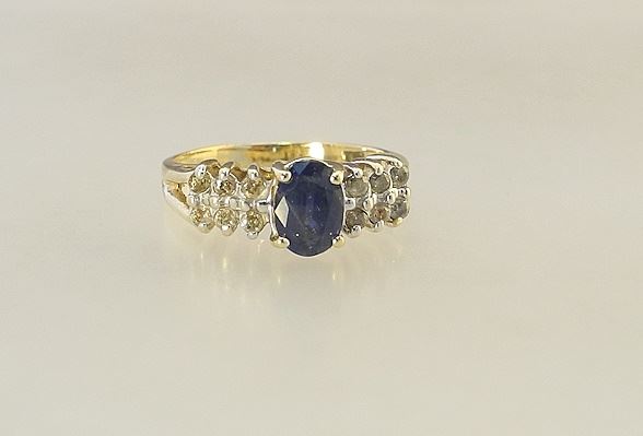 LOT 13 14K (marked) Yellow Gold Sapphire & Diamond Ring, Size 6 1/2, 3.5g. Estimate: $150 - $250 Sold For: $200 Auction Date: Tuesday, June 18 2024 at 4:00 PM