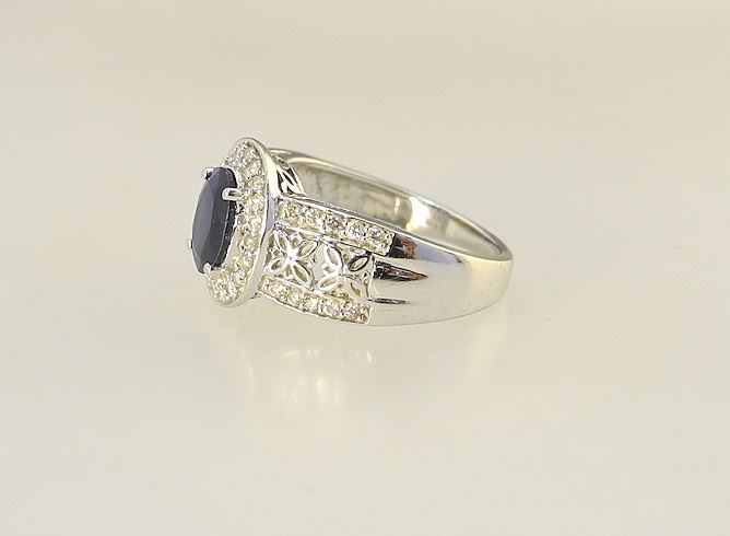 14K (marked) White Gold Sapphire & Diamond Ring, Size 6 3/4, 4.52g.