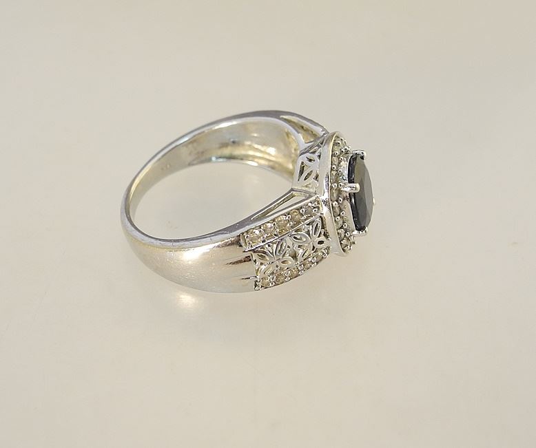 14K (marked) White Gold Sapphire & Diamond Ring, Size 6 3/4, 4.52g.