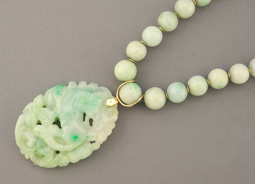 LOT 18 Graduated Jade Bead Necklace with Pendant, 14K (marked) Gold Clasp, 22"L. Estimate: $200 - $400 Sold For: $650 Auction Date: Tuesday, June 18 2024 at 4:00 PM