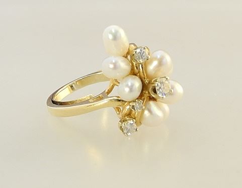 LOT 36 14K (marked) Yellow Gold Diamond & Pearl Ring, Size 5 1/2, 6.2g. Estimate: $320 - $400 Sold For: $300 Auction Date: Tuesday, June 18 2024 at 4:00 PM