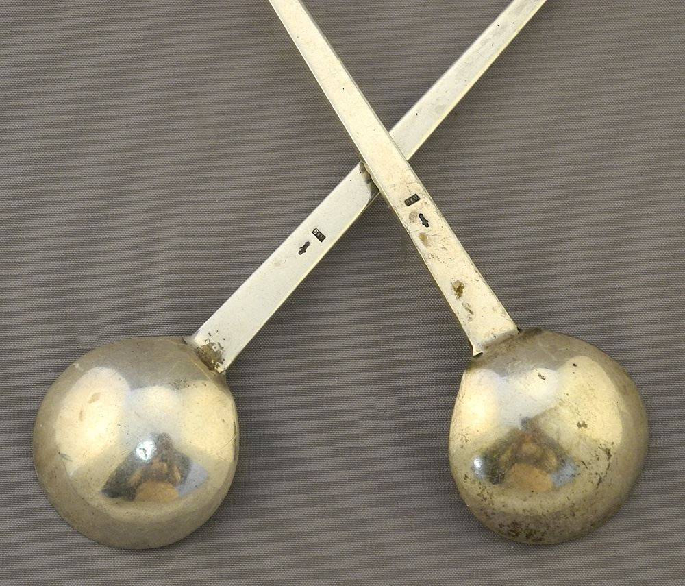 Pair of Dutch Silver (marked) Long Cellar Spoons, 6 3/4"L, 34g.
