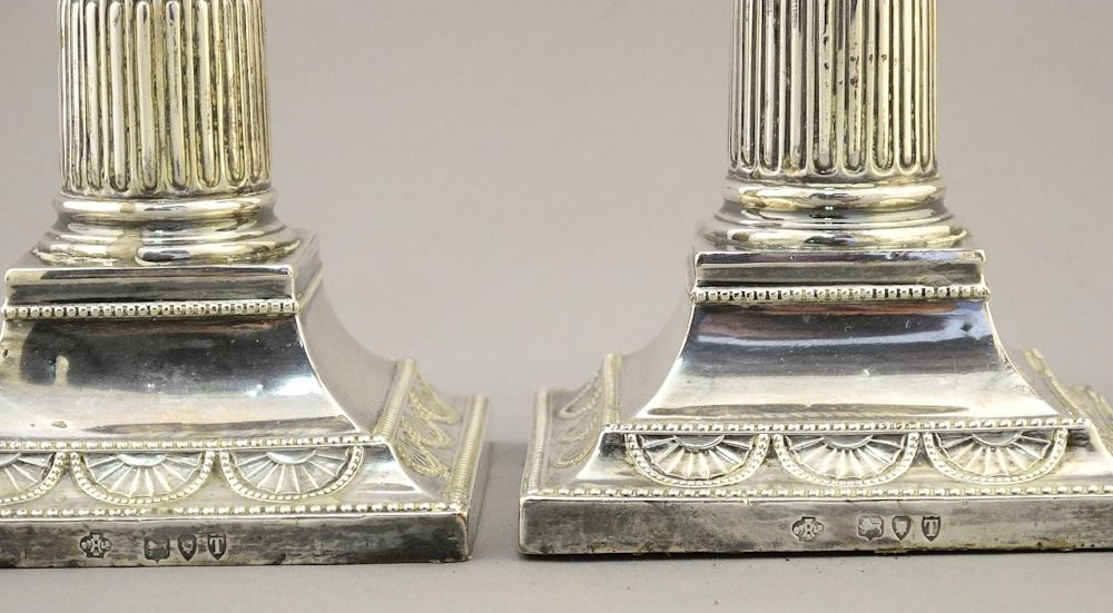 LOT 6 Pair of Hallmarked Silver Candlesticks with Weighted Bases, 5 1/2"h, TW 920g. Estimate: $200 - $300 Sold For: $190 Auction Date: Tuesday, June 18 2024 at 4:00 PM