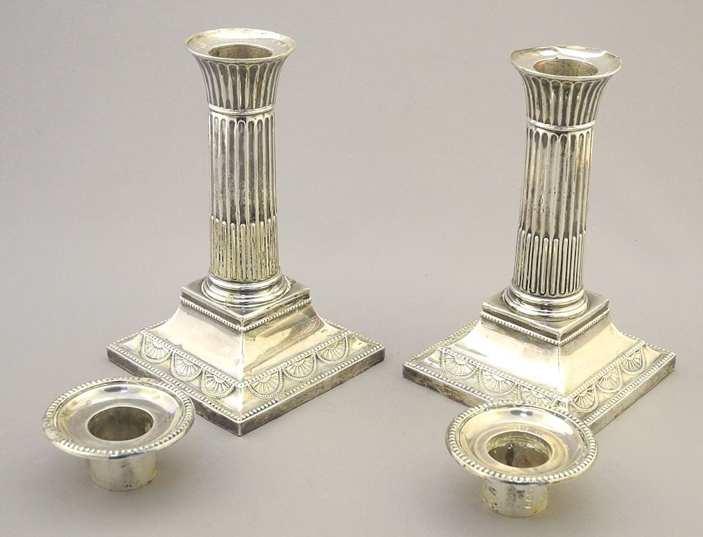 LOT 6 Pair of Hallmarked Silver Candlesticks with Weighted Bases, 5 1/2"h, TW 920g. Estimate: $200 - $300 Sold For: $190 Auction Date: Tuesday, June 18 2024 at 4:00 PM