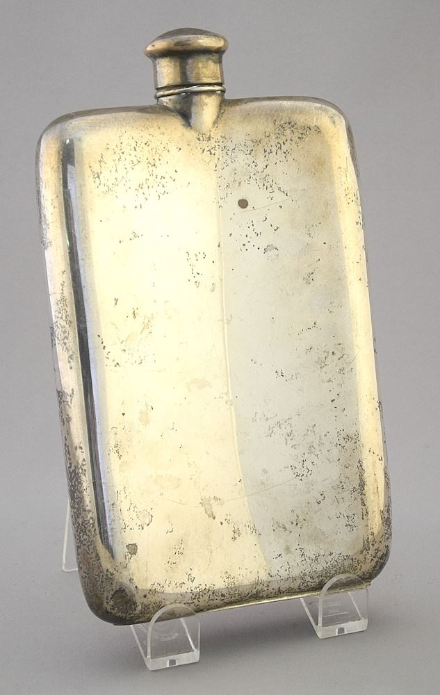 LOT 5 Sterling (marked) Flask, Inscribed, 7 5/8"h, 230g. Estimate: $160 - $200 Sold For: $200 Auction Date: Tuesday, June 18 2024 at 4:00 PM