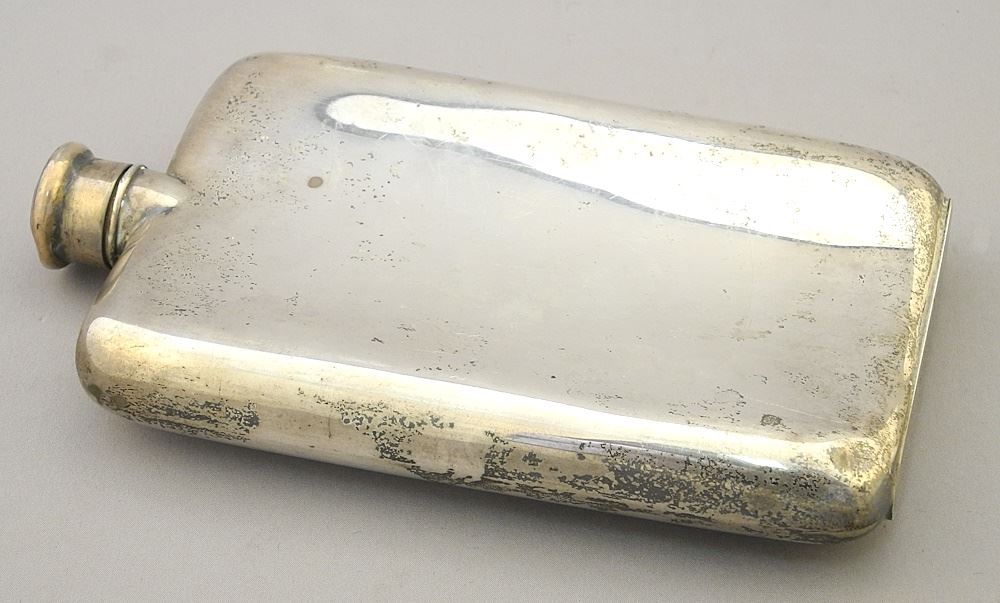 LOT 5 Sterling (marked) Flask, Inscribed, 7 5/8"h, 230g. Estimate: $160 - $200 Sold For: $200 Auction Date: Tuesday, June 18 2024 at 4:00 PM