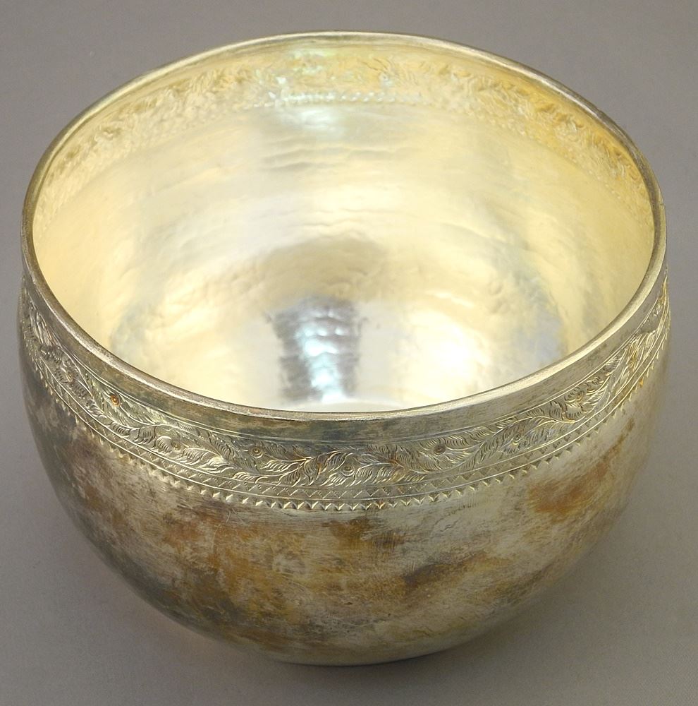 LOT 49 Southeast Asian Silver Alloy Bowl, 3 3/4" x 5 1/2" Diameter, 339g. Estimate: $200 - $300 Sold For: $275 Auction Date: Tuesday, June 18 2024 at 4:00 PM