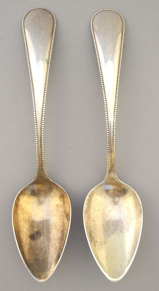 LOT 226 Pair of Dutch Second Standard (marked) Silver Serving Spoons, 9 7/8"L, 203g. Estimate: $140 - $180 Sold For: $140 Auction Date: Tuesday, June 18 2024 at 4:00 PM