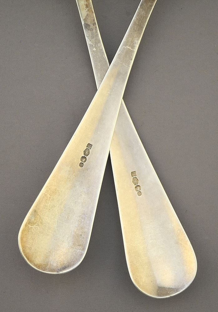 LOT 226 Pair of Dutch Second Standard (marked) Silver Serving Spoons, 9 7/8"L, 203g. Estimate: $140 - $180 Sold For: $140 Auction Date: Tuesday, June 18 2024 at 4:00 PM