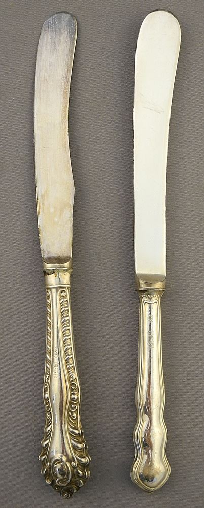 2 Sets of Silver Handled (marked) Fruit Knives & 3 Napkin Rings, 42g.