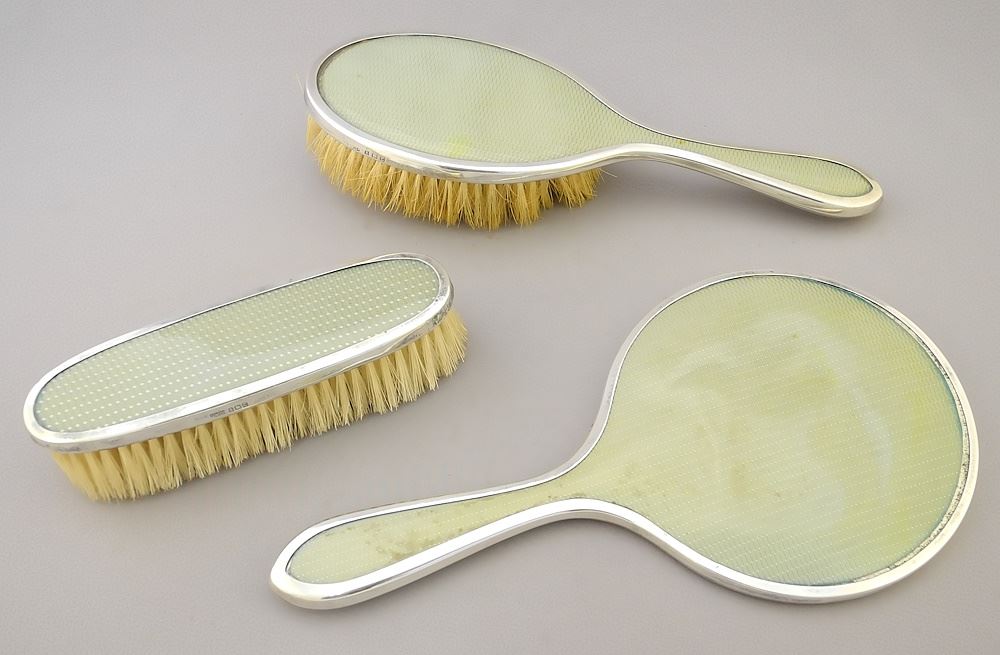 LOT 232 3 Piece Sterling Silver Dressing Set , Mirror 10 1/2"L, TW 530g. Estimate: $100 - $200 Sold For: $100 Auction Date: Tuesday, June 18 2024 at 4:00 PM