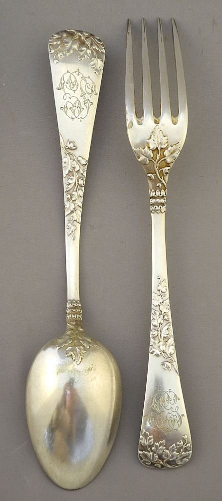 LOT 261 French 18th C. Hallmarked Open Salt with Antique French Silver Plated Serving Pieces (liner rest Estimate: $50 - $60 Sold For: $120 Auction Date: Tuesday, June 18 2024 at 4:00 PM