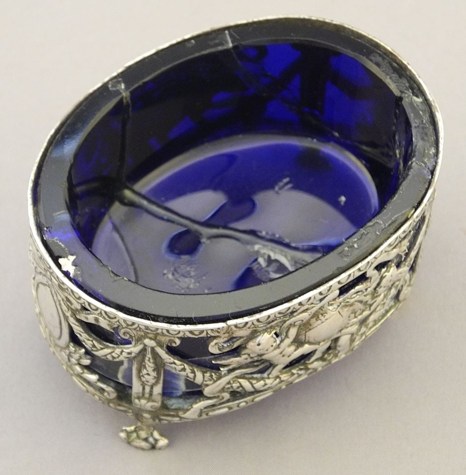 LOT 261 French 18th C. Hallmarked Open Salt with Antique French Silver Plated Serving Pieces (liner rest Estimate: $50 - $60 Sold For: $120 Auction Date: Tuesday, June 18 2024 at 4:00 PM