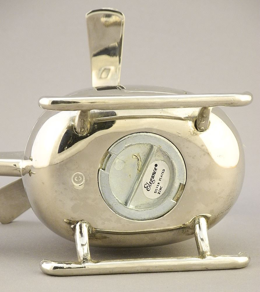 LOT 188 Elegance Silver Plated Zinc Helicopter Coin Bank. Estimate: $50 - $60 Sold For: $50 Auction Date: Tuesday, June 18 2024 at 4:00 PM