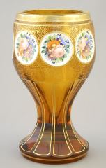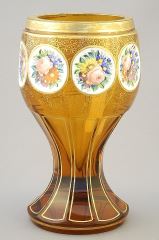 Bohemian Enameled Amber Glass Goblet , 6 1/4"h.