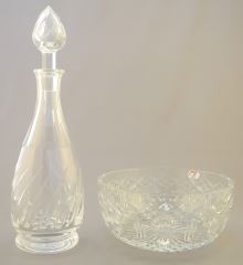 LOT 41 Webb Crystal Bowl (8" Diameter) & Stuart Decanter, 13 1/4"h. Estimate: $50 - $70 Sold For: $35 Auction Date: Tuesday, August 13 2024 at 4:00 PM