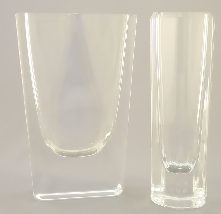 Two Kosta Boda Crystal Vases: 48774 & 44269 by B. Edenfalk, 8 7/8" & 9"h.