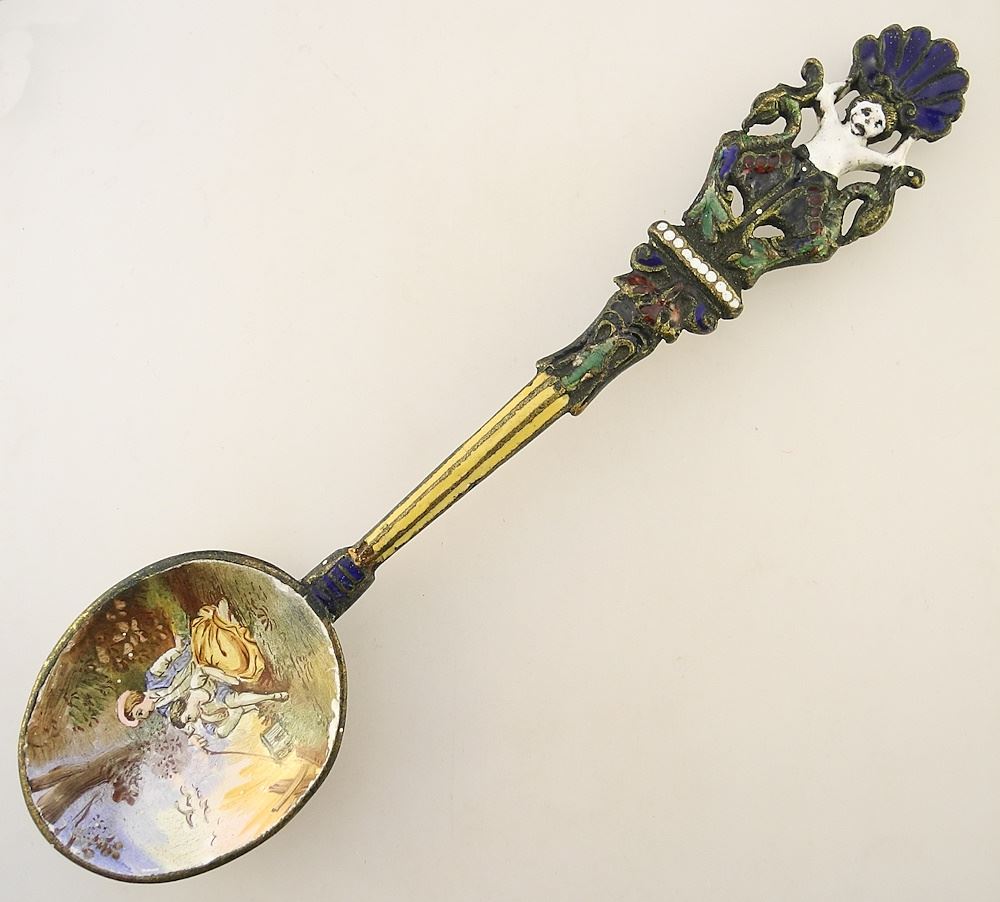 LOT 124 19th C. Enameled Spoon, 5 1/8"L, Unmarked, 30g. Estimate: $60 - $100 Sold For: $90 Auction Date: Tuesday, August 13 2024 at 4:00 PM