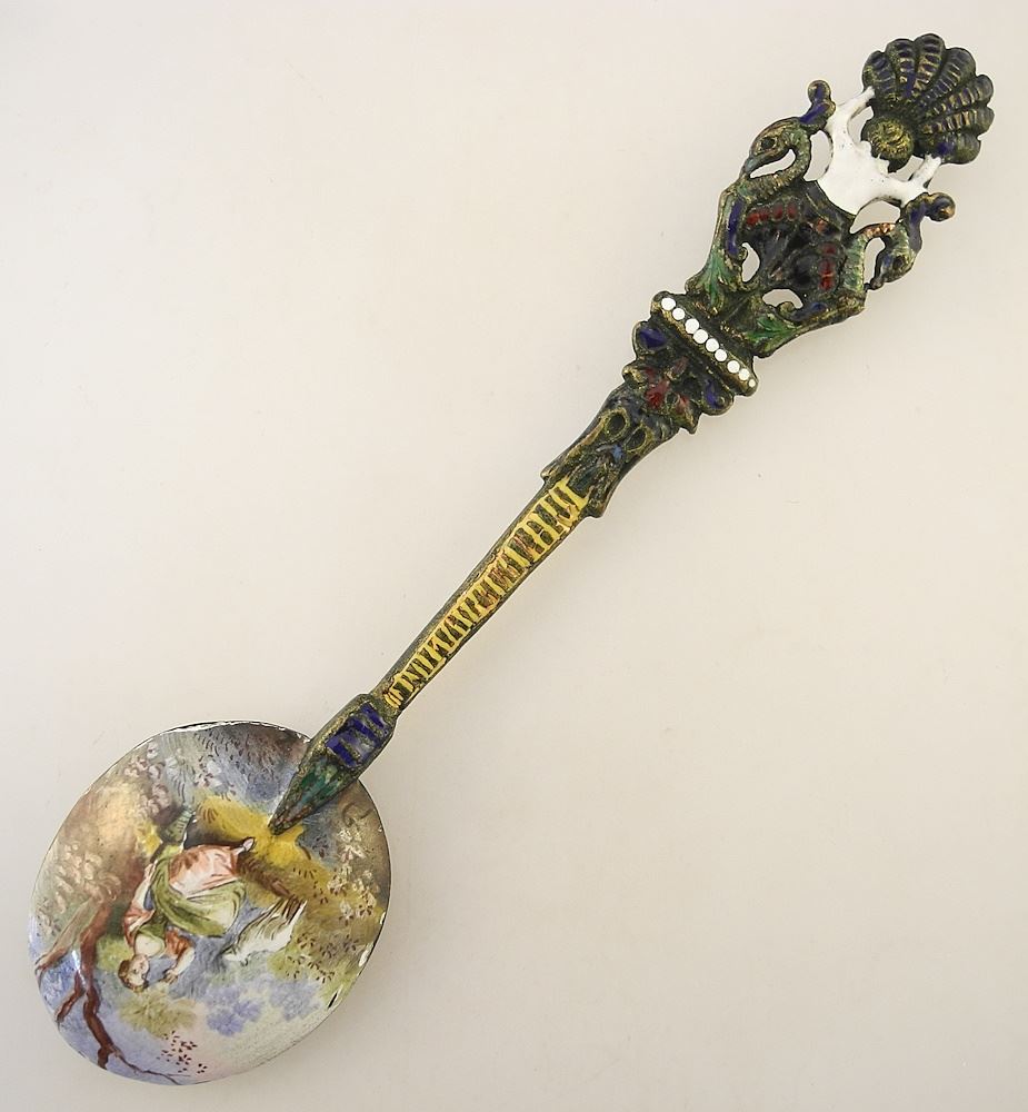 19th C. Enameled Spoon, 5 1/8"L, Unmarked, 30g.