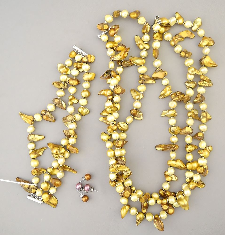 LOT 232 Keshi & Freshwater 3 Strand Pearl Necklace, Bracelet & 2 Pair of Sterling Silver Earrings. Estimate: $50 - $70 Sold For: $100 Auction Date: Tuesday, August 13 2024 at 4:00 PM